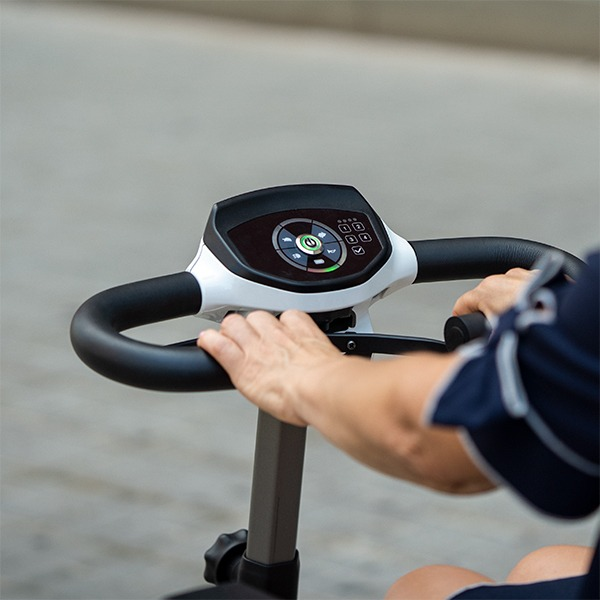 The Bali scooter can be folded and unfolded electronically in seconds, either via the control panel or with a wireless remote. This makes it easy to transport in a car or store in small spaces.