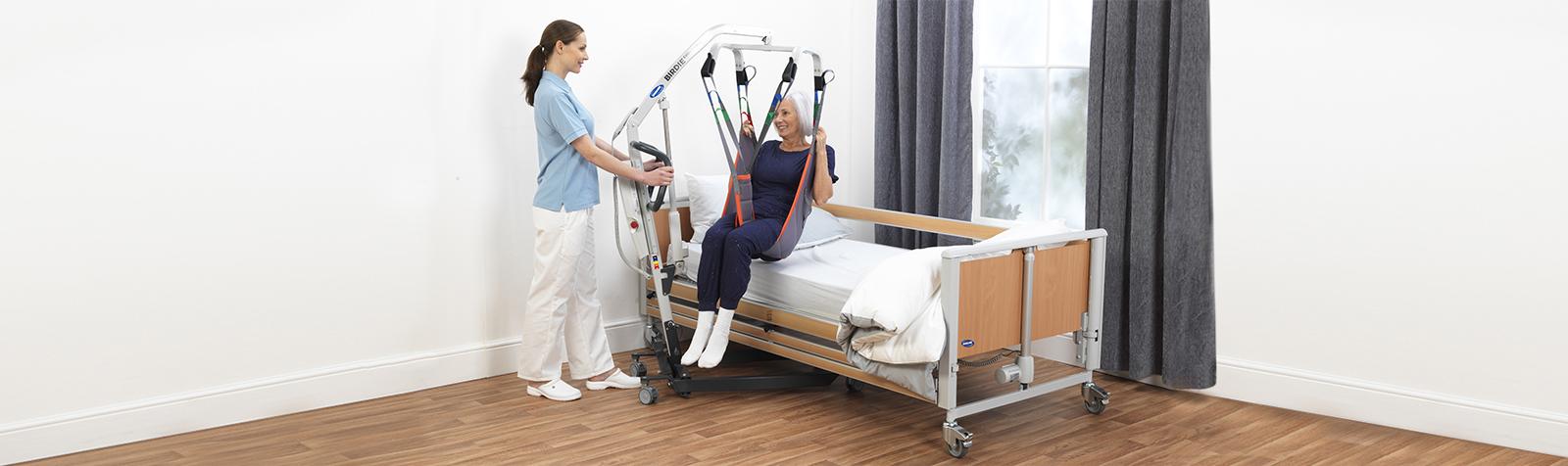 Ofrecemos para el alquiler una cama articulada, eléctrica, plegable y con carro de transporte. Es la Vermeiren Illico, una de las mejores del mercado.