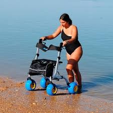 Rollator CITY del fabricante NOVAF. Andador plegable todoterreno de 4 ruedas para playa y terrenos difíciles.
