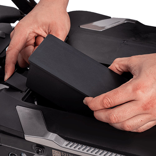 Incorpora batería de litio, que se puede retirar fácilmente para cargarla de forma independiente. Este tipo de batería ofrece mayor eficiencia, menor peso y mayor durabilidad.