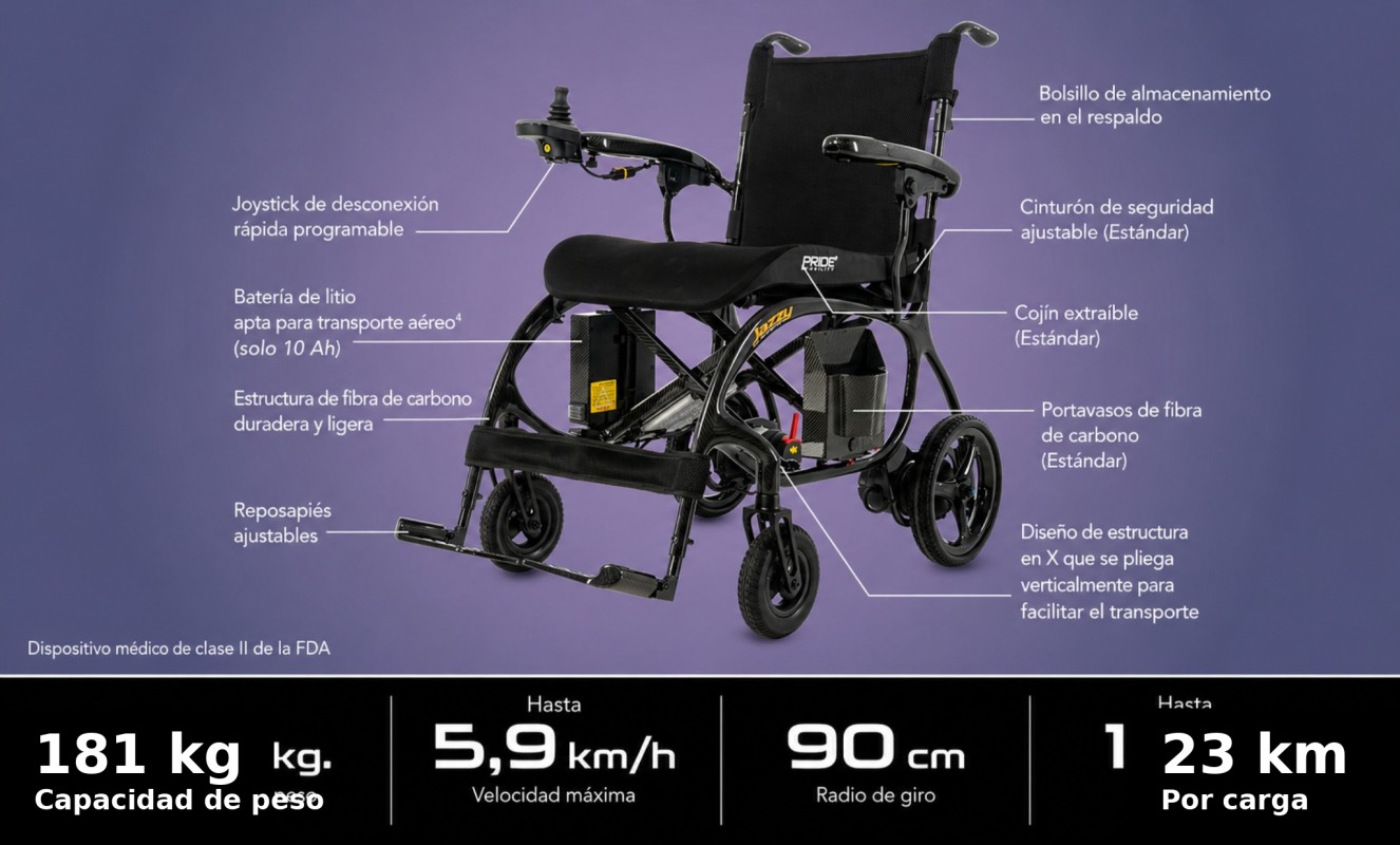 La Jazzy Carbon Max HD es una silla de ruedas eléctrica plegable de última generación fabricada con fibra de carbono, lo que la convierte en una opción extremadamente ligera pero resistente.