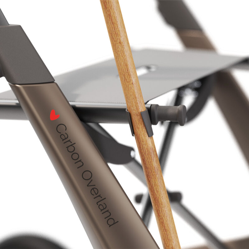 ¿Te gustaría llevar siempre contigo tu bastón de forma fácil sin que te moleste? El portabastón Carbon Overland es una solución inteligente y práctica para transportar tu bastón de manera segura mientras utiliza tn andador. Este ingenioso accesorio permite fijar fácilmente tu bastón al marco del andador, de esta forma ya no tendrás que elegir entre tu bastón y tu andador.