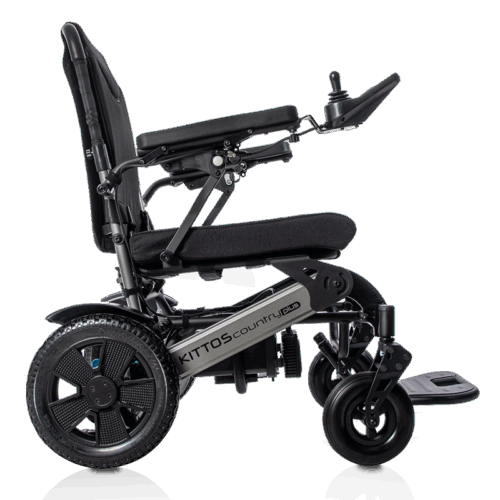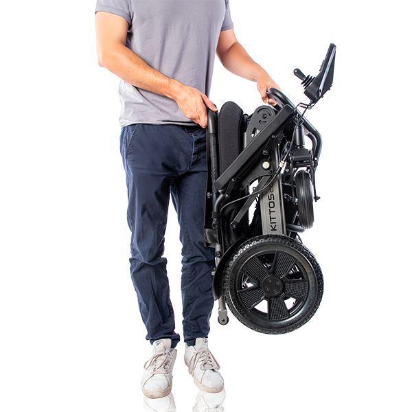 The Kittos Country Plus lightweight folding electric wheelchair from Total Care is ideal for travel, as it folds in just 5 seconds.