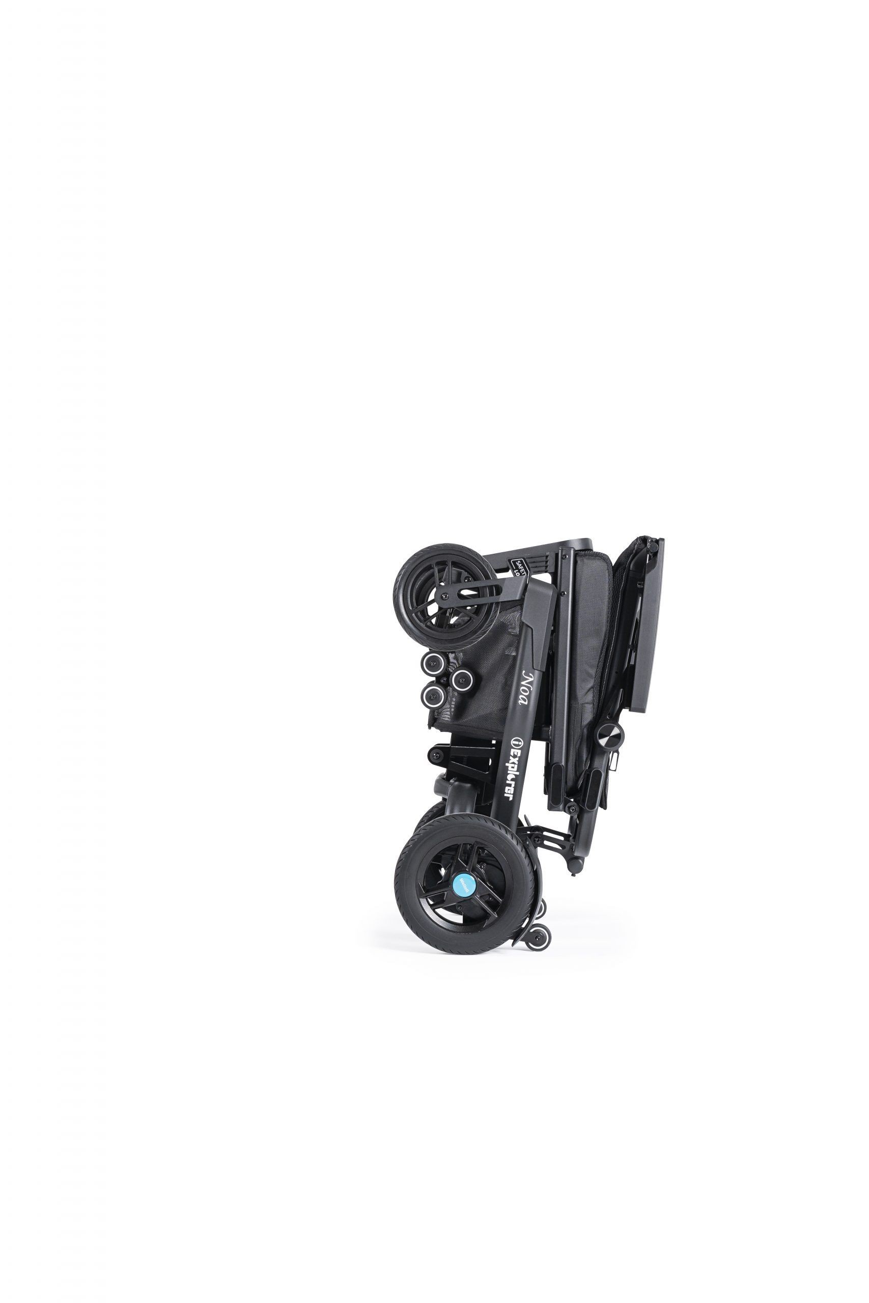 Thanks to its compact design, tight turning radius of only 80 cm, and quick-folding system, the i-Explorer Noa allows for easy maneuvering in small spaces and convenient transport in a car.